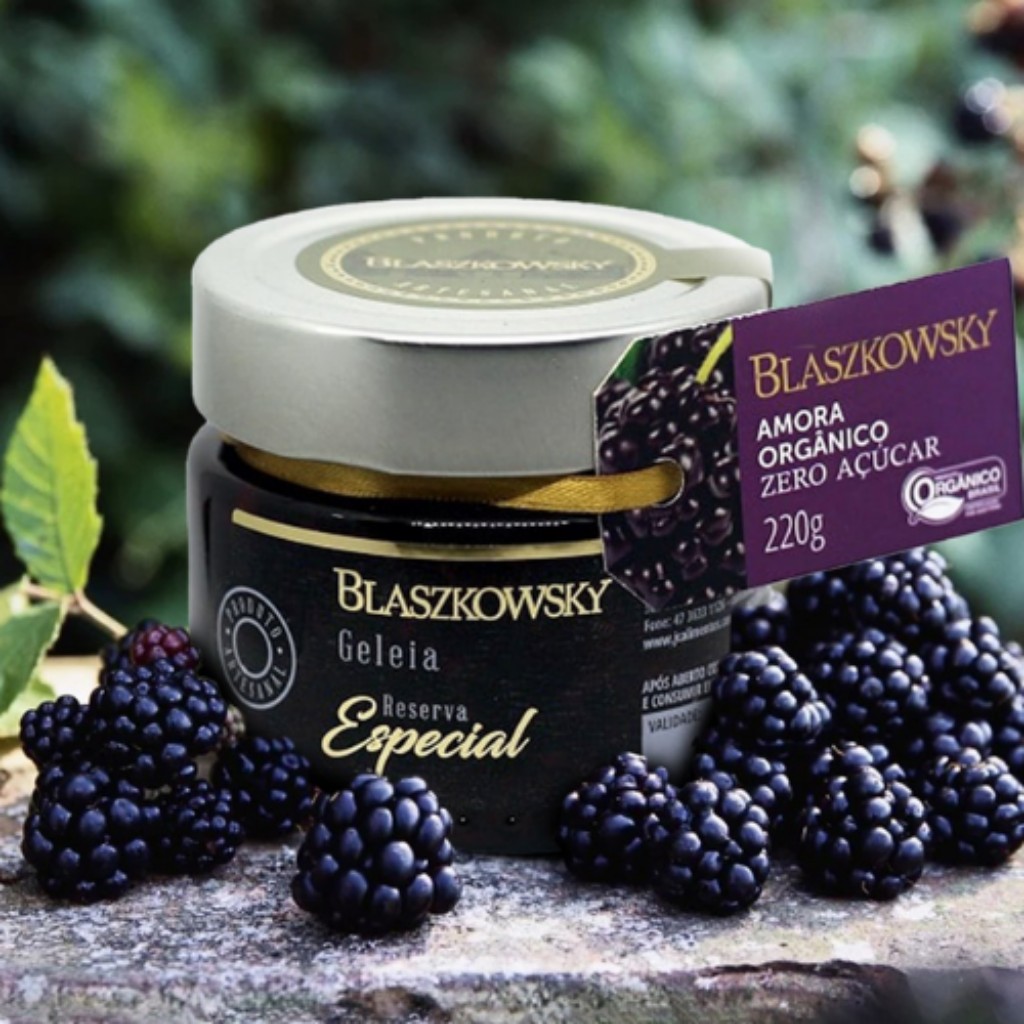 Já a geleia de amora sem açúcar da Blaszkowsky se destaca pelo sabor intenso e levemente ácido, ideal para quem aprecia geleias mais naturais e menos doces.